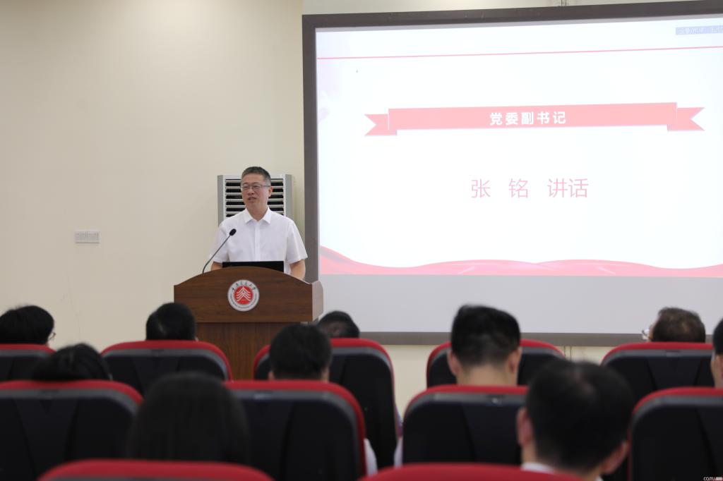 张铭副书记代表学校对36位新入职教师表示热烈欢迎,并对新教师职业发展提出三点要求和希望:一是胸怀“国之大者”,在教育强国建设中勇担交大使命;二是弘扬教育家精神,做新时代立德树人的“好老师”;三是扎根交大沃土,在创新实践中书写育人新篇章。张铭强调,各相关单位要加强协同配合,关心关爱新教师成长,高质量完成培养任务,为学校“双一流”建设提供坚实人才支撑。